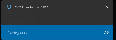 눌러주시면 6자리 페어링 코드가 나옵니다. 이 코드를 상단 알림바의 X8/F1 Launcher "Pairing code"란에 입력해 주세요.