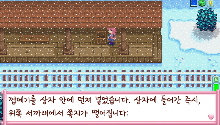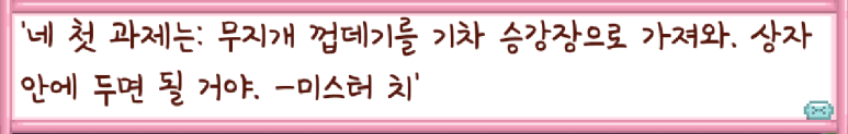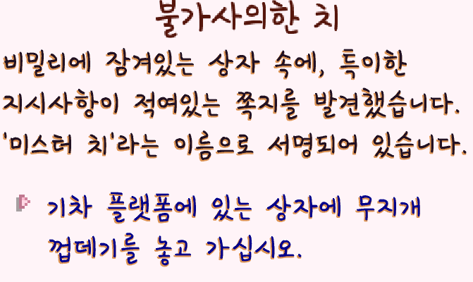 기차역에 가면 박스가 보입니다. 박스에 무지개껍데기를 넣어줍니다. 쪽지가 또 나옵니다.