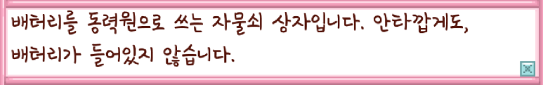 상자를 그냥 눌러보면 배터리가 들어있지 않다고 나옵니다. 배터리를 든 상태로 상자를 눌러봅니다.