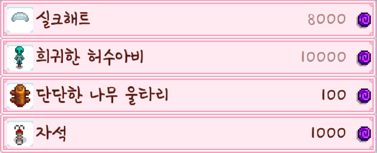이 곳에서 꼭 구매해야 하는 것은 "희귀한 허수아비(8개 중 3번째)" 입니다.