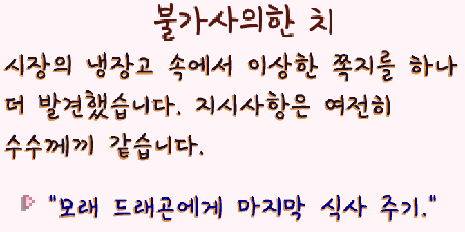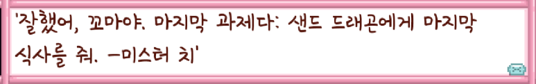 마지막 미션입니다. 모래 드래곤에게 마지막 식사를 주기입니다.
