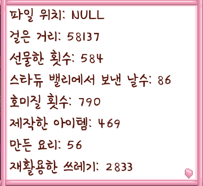 이상한 곰돌이 컴퓨터에서는 스타듀 내의 기록이 표시됩니다