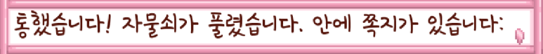 자물쇠가 풀리고 쪽지를 확인할 수 있습니다. 자물쇠가 풀리자마자 퀘스트가 생성됩니다.
