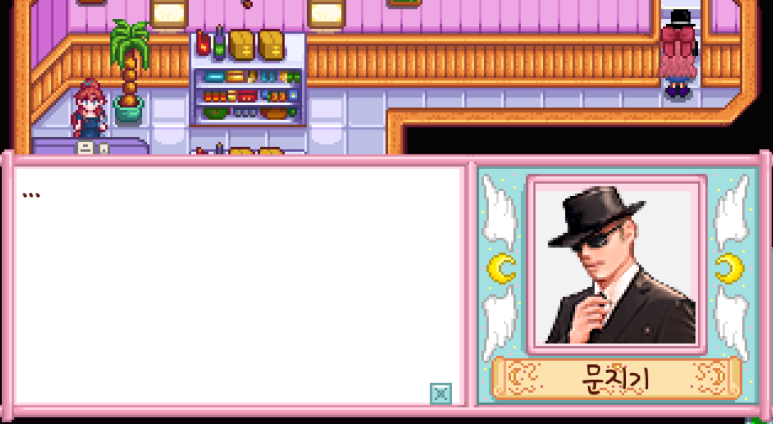 처음 입장하면 검정모자에 검정옷을 입은 수상한 남자가 있습니다.