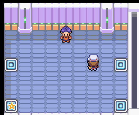 입구의 발판을 밟아서 시작! 모든 트레이너와 배틀하는 전체코스와 빠르게 관장에게 도전 가능한 초단기 코스가 있습니다. 원하시는 방법을 선택해서 진행하세요.